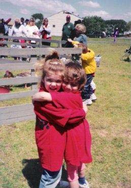 Best friends embrace each other and the Gateway experience at a school outing (June, 2000)