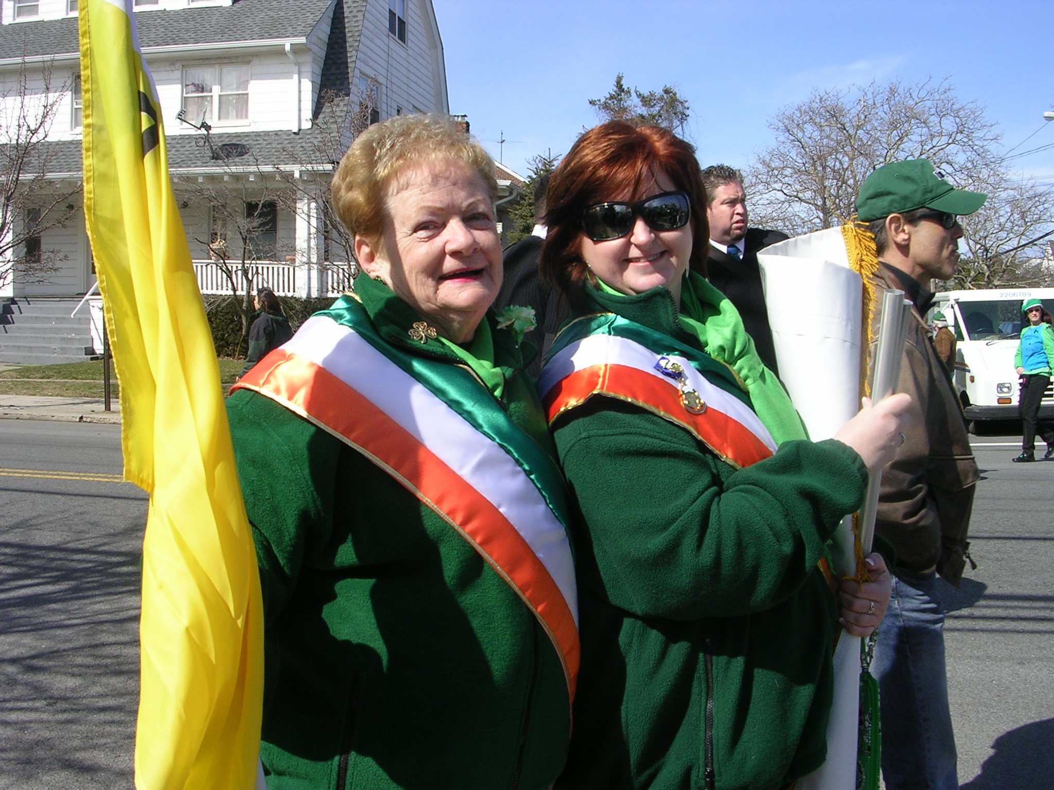 Oh, and there was a parade today. Fifty minutes and it was gone. My favorite unit–the colorful and educational flags for each of the 32 counties in Ireland, displayed by the marchers of the Ladies’ Ancient Order of Hibernians. The Iona College Bagpipe Band, bringing up the rear of the parade this year, was also a cut above the rest of the musical units, I thought.