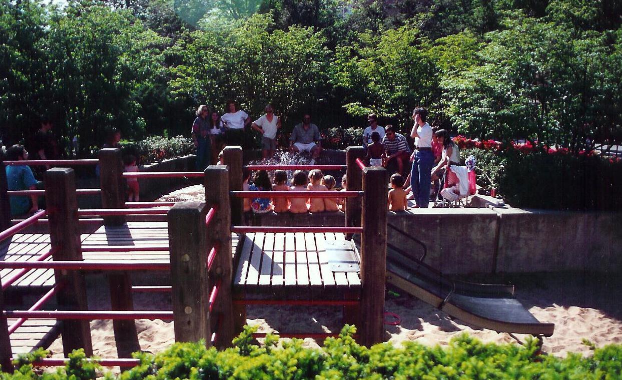 My Dad serendipitously captured this Tribeca park scene as we walked from the church to the reception site. He entered the photo in a contest and won a free annual park pass for his efforts. Photo copyright Martin F. Rattay 1991.