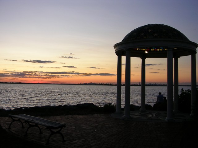 Of course, it took Rockaway a while to catch up to the national trends. If 9/11 had not occurred, we might still have an ugly, used car junkyard in the spot now graced by Tribute Park. We still haven’t figured out how to get rid of the unsightly billboards that detract from our scenic views of the bay. Local artist Patrick Clark, who designed and fabricated the unique curved, faceted, Dalle de Verre dome, mosaic sundial, and other artistic elements at Rockaway’s three 9/11 tribute parks, tried to advocate a vision similar to Mrs. Johnson’s here in Rockaway. He didn’t have the power of the White House or wide backing from the community, so the corporate junkyard dogs squelched his efforts. Rockaway Park’s memorial now shares its bay front location with a pharmacy parking lot, a huge billboard, and an automobile service station. At least Duane Reade fixed the grammatical error on the billboard eventually…