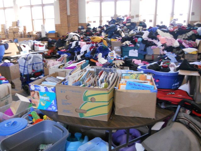 The mission of First Congregational Church did not cease as a result of the storm. The historic sanctuary doubled as storage for donated clothing while worship services continued. AA meetings resumed on Day 3, despite heavy storm damage to the chapel floor, Sunday School and basement choir room.