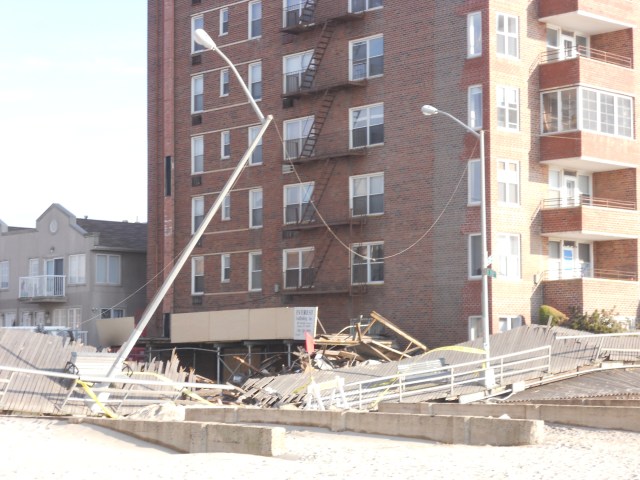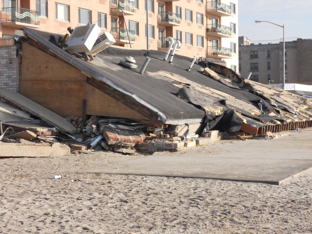 I knew it was really bad when there was no Wave newspaper on Friday, November 2, or November 9.  The paper was founded in 1893, and I don’t think there had ever been a cessation of publication before this storm.  The first floor newsroom (with original bound copies of the paper from the 1890’s and on) was destroyed.  Much of the archives of the Rockaway Museum and Playland memorabilia–gone.  Another truly shocking vision was the sight of Dean Georges’ beachfront home, which held a huge collection of Rockaway memorabilia, flattened to the sand.  I hope the statue from Curley’s Hotel survived, Dean!