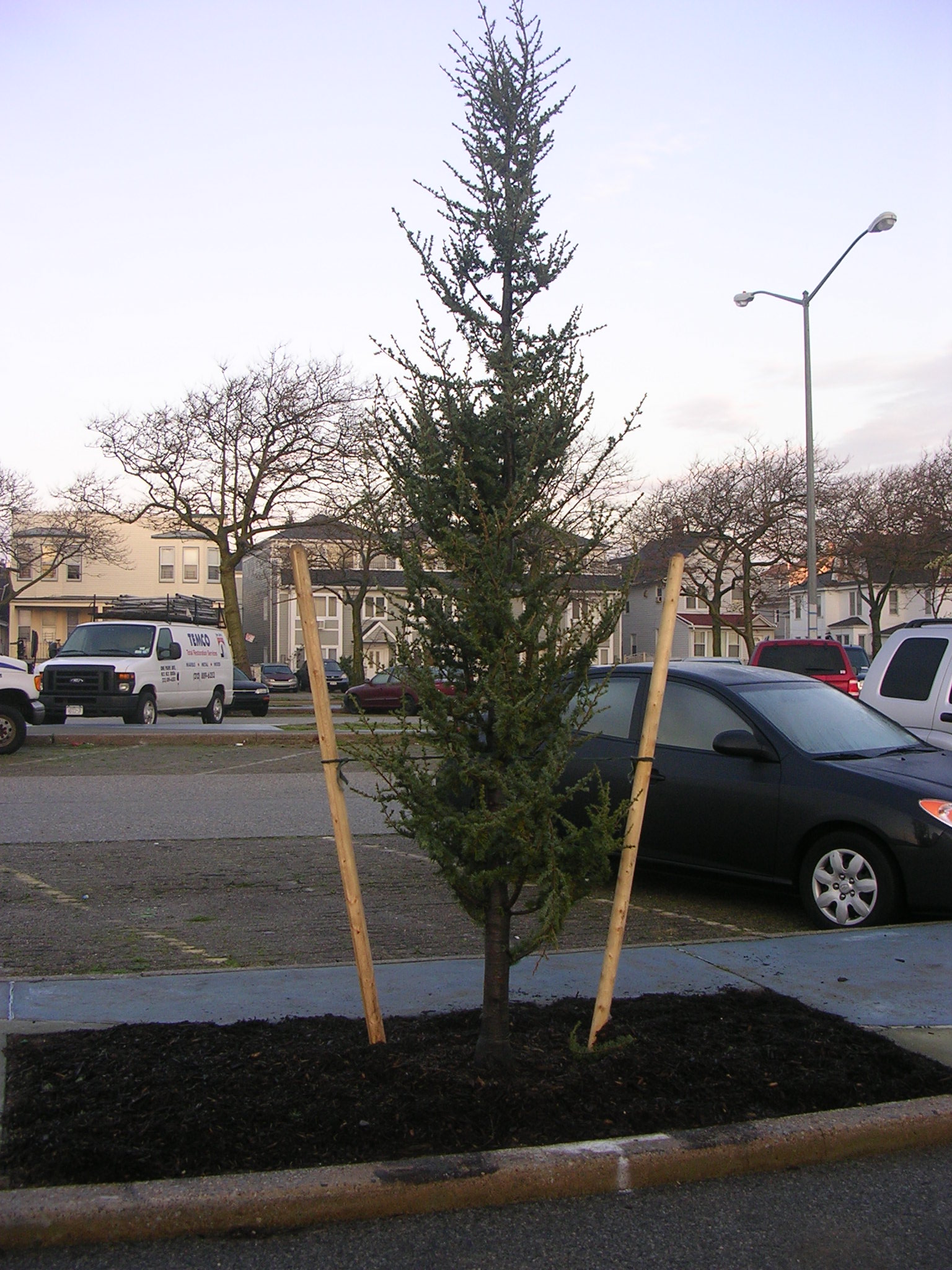 Native Atlantic Cedars Just Planted on Beach 94 Street Near Peninsula Library