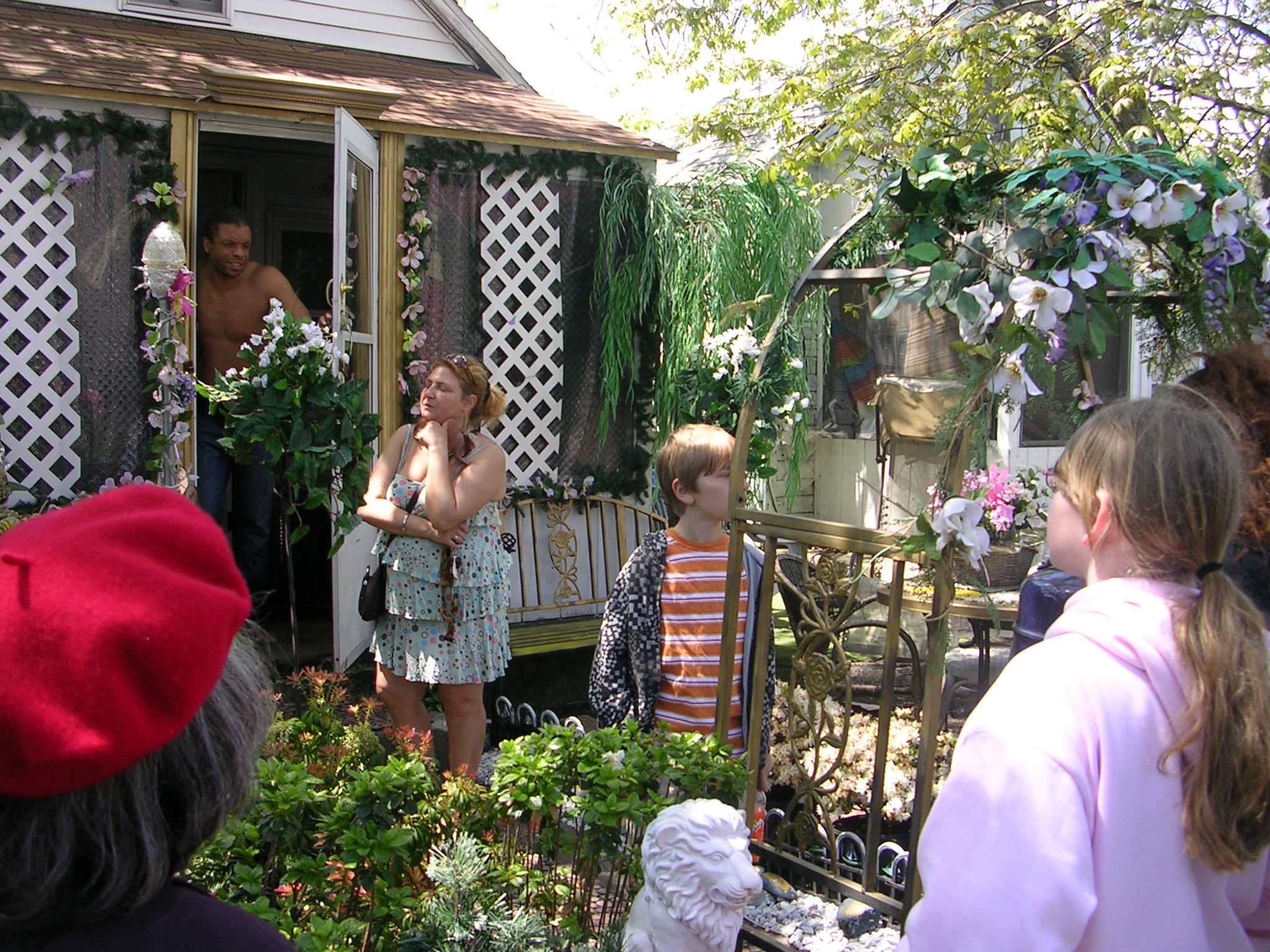 We concluded the tour with a 10-minute jaunt to the historic bungalow colony at Beach 101 Street, where we chatted with resident Katherine, and one of her neighbors who tends an impressive flower and statuary garden in front of his house.