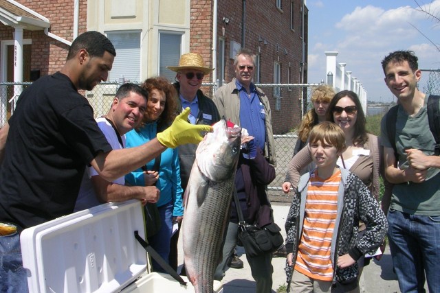 Walkers Enjoyed Seeing A Huge Jamaica Bay Striper in the Flesh!
