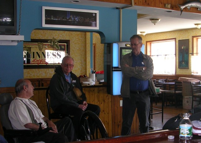 Some of the walkers may have started out at 11 a.m. as “DFD’s” (a pejorative local term for visitors “down for the day”), but within two hours, all had been transformed into true experts on the local scene. It helped that we were able to stop in to Rockaway Graphics and chat with proprietor Len Kohn, who operated amusements on the boardwalk for many years, and shared some of his knowledge about Rockaway’s vaunted past and some of the reasons why it all changed. Len thinks that technology and transportation were key factors. The invention of nylon wiped out the need for bathhouses and bathing suit rentals, and the burning of the LIRR trestle wiped out the 30-minute ride to Penn Station. Also, he added that placement of undesirable social services establishments throughout the peninsula hastened its decline, as well.