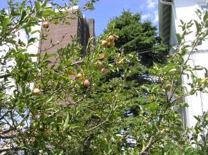 Fruit trees are all over the peninsula–in front yards, back yards, and community garden plots from east to west, if you just linger and look closely. If you don’t look closely, you’re far more likely to notice the McDonald’s or the Wendy’s.